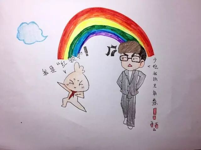 这张还是有对话的呢,可爱的小馒头戴着红领巾想要抢小崔哥哥的主角?